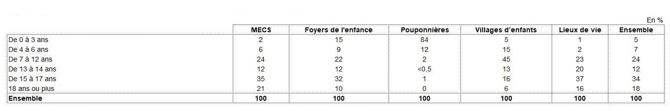 Les enfants et jeunes accueillis sont âgés en moyenne de 13 ans, mais la moitié a 15 ans ou plus (comme en 2017), « la tendance est à une avancée en âge », observe la Drees. Les plus jeunes sont plus largement orientés en familles d’accueil et les adolescents et les jeunes majeurs en accueil en établissements. Fin 2021, les jeunes sont dans l’établissement qui les accueille depuis 20 mois en moyenne. ; la moitié est arrivée il y a plus de 13 mois.