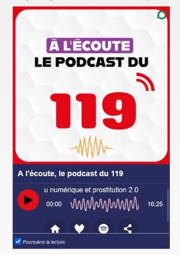 Récemment mis en ligne, le troisième épisode donne la parole à Hélène David, coordinatrice des permanences Ado Sexo de l'association ACPE (Agir contre la prostitution des enfants), Kathia Baudry, cheffe du service Astheria au sein de l'association Aurore, et Caroline Gierden, chargée de projet au sein du dispositif de lutte contre la prostitution des mineurs du 119.